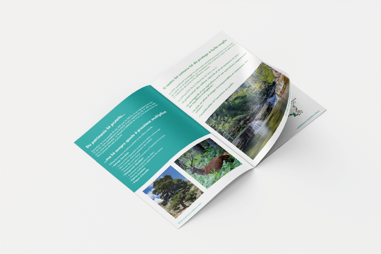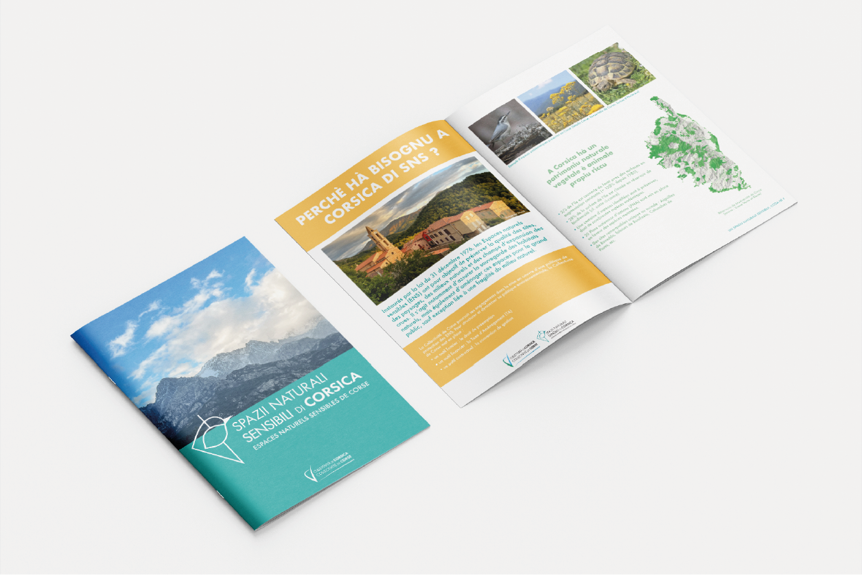 Conception de l’identité visuelle des ENS Corse, et développement de divers supports de communication. En collaboration avec Agence Myso.