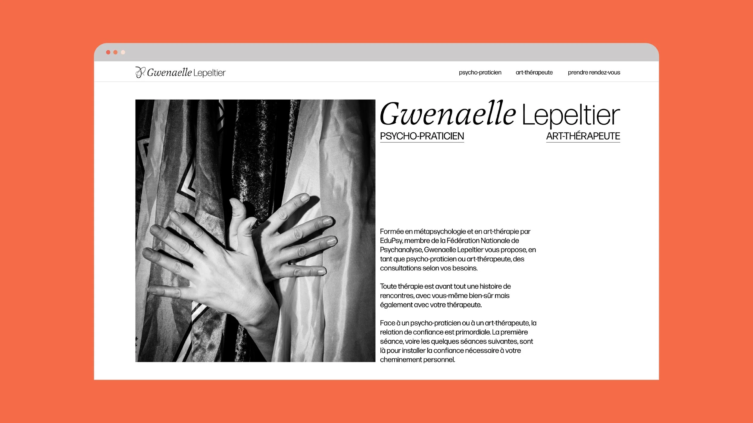 Psycho-praticienne et art-thérapeute, Gwenaëlle souhaitait une identité visuelle qui reflète l’équilibre entre ses deux activités. Nous avons conçu une charte graphique mêlant courbes et typographies expressives, symbolisant la douceur et la créativité au cœur de son approche. En collaboration avec Agence Myso